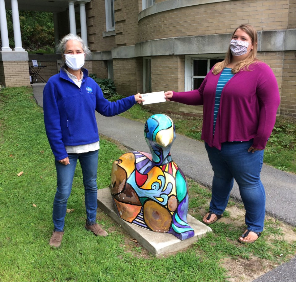 Jan Collins of the Wilton Blueberry Farm presents a check for $1,000 to Jennifer Scott, director of the Wilton Free Public Library. The contribution came from all the proceeds of blueberry sales on Sunday, August 17 at the farm. “We are glad to make this contribution each year to one of Wilton’s greatest assets,” said Ms Collins. Submitted photo