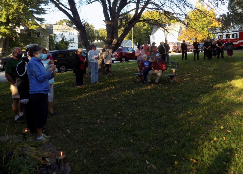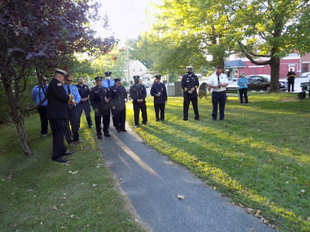 Members of the Livermore Fire Department participate in a candlelight vigil Friday evening in Union Park in Livermore Falls to remember those killed in the terrorist attacks against the United States on Sept. 11, 2001. Members of the Jay Fire Department, Livermore Falls Police Department, military veterans and area residents participated. Pam Harnden/Livermore Falls Advertiser