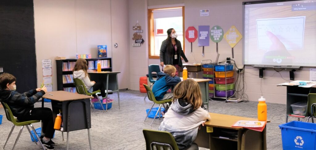 An hour-long block at the end of the school day has been reserved, a time when teachers can do some lesson planning and touch base with the children learning remotely.