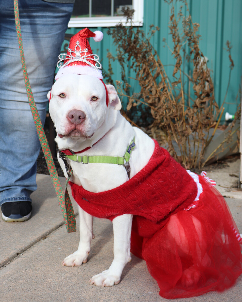 You have to love a dog that doesn’t mind being dressed in a holiday outfit. Angel recently wore her costume and walked in a parade with other Responsible Pet Care animals that processed through the parking lot of the Paris Elementary School. The students and teachers were thrilled to see her and her four-legged friends.