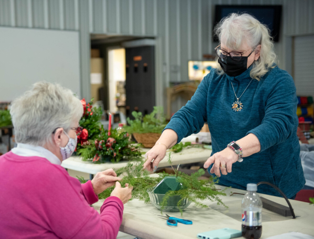 Patty Hesse, right, helps Barbara Canwell get started on her Christmas centerpiece at the Station House Community Center in Oxford on Wednesday. The Oxford Recreation Department holds craft sessions every Wednesday afternoon for anyone who wants to attend. Andree Kehn/Sun Journal Buy this Photo