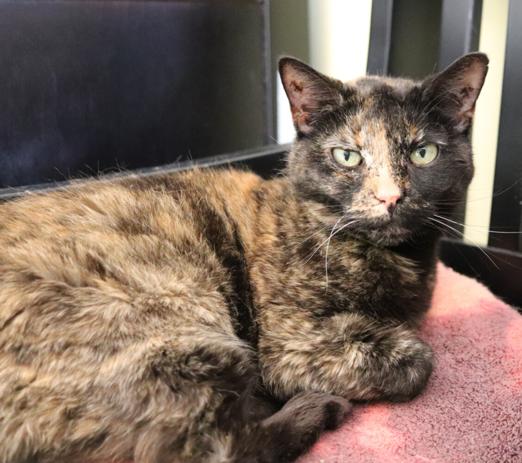 Shelley has a knack for finding the perfect places to nap. When you enter the shelter you could find her laying in front of the door if the sun is shinning there. She could also be curled up on the visitor’s bench or she may have found one of the beds that the staff leaves out for other cats.