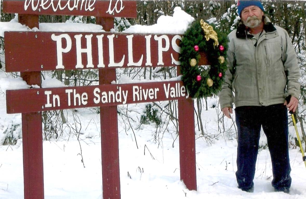 Bruce Godin of Phillips attached a Christmas wreath to the welcome to Phillips sign located on Route 4, Madris, Salem Rd, Route 149, Avon, and 142 Weld Road. This is a project of the Sandy River Business Association. The wreaths are purchased locally each year from Lorraine Berry on Upper Park Street. Submitted photo