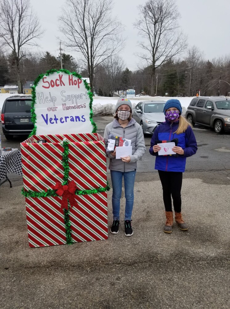 JAY — The weather was cold and damp but the fire pit was warm as VFW Post #3335 in Jay held its Drive by Sock Hop on December 12. This event collected new socks for Maine’s homeless Veterans, and the community came through again as they drove through and filled the box with 780 pairs of new socks.