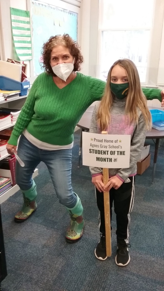 Gracie Cooper, grade 4, with teacher Ann Toita.