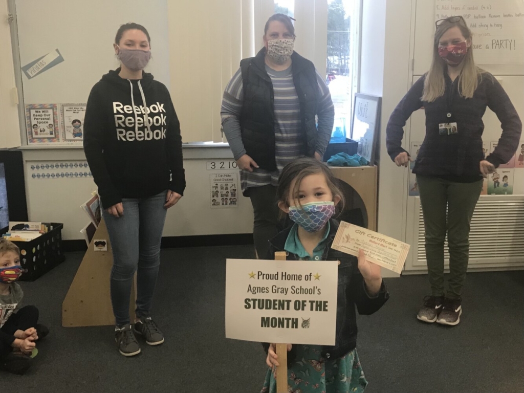 Madisyn Bean, PreK with teachers from left to right: Ms. Delallo, Mrs. Grondin, Mrs. Arntsen.