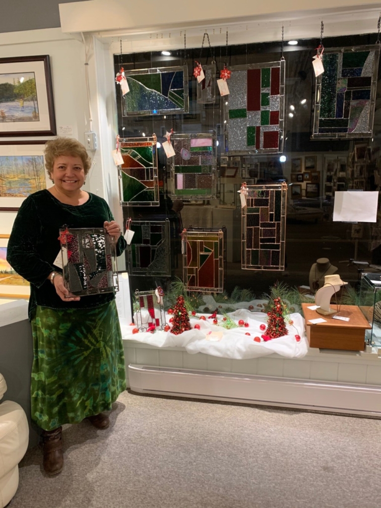 BRIDGTON — Gallery 302 is happy to add a new stained-glass artist to its group of more than 40 artists. Deborah J. Ripley is a stained-glass artist from Denmark, Maine. Deborah learned stained-glass techniques from a very gifted local artist in the Winter of 2016. It brings her great joy to make something interesting, bright, and beautiful from a pile of colored glass. Deborah’s ultimate desire is for the client to feel joy from the stained-glass she creates. She believes art is both magical for the artist creating it and for the person purchasing it! Deborah loves to work with different types of cathedral and textured glass and she loves wild and unusual colors of stained-glass. The artist does not follow a specific pattern but rather chooses to create a free-flowing, creative design of colors and patterns as she works. Her only planning is the size for the artwork and the boundary to work within. Deborah loves this because her artistry comes alive when the light reaches the stained-glass.