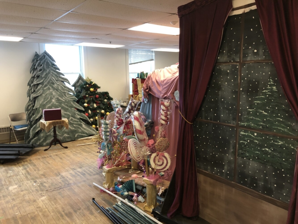 A room at the Gendron Franco Center in Lewiston is full of props for the filming of “A Nutcracker Christmas” by The Dance Studio of Auburn. Amelia Pullen photo