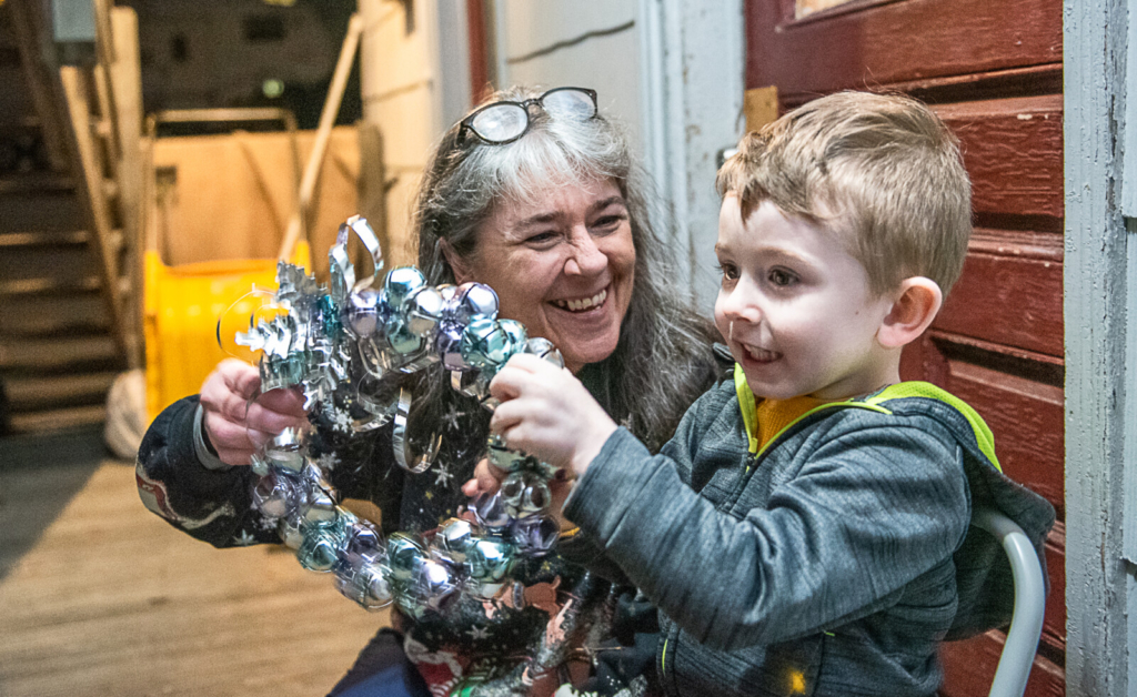 Linda Scott and her 3-year-old grandson Benedict ring bells on Scott’s porch in Auburn on Christmas eve as part of a Worldwide Christmas Eve Jingle, in which participants were encouraged to ring bells outside of their home at 6 p.m. local time. Andree Kehn/Sun Journal Buy this Photo