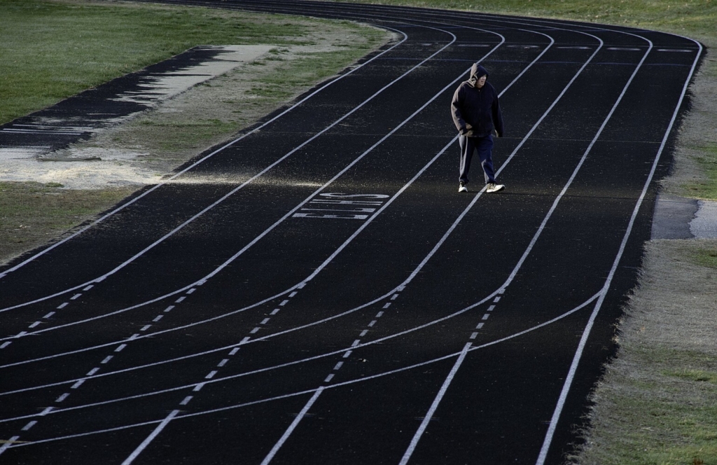 Richard Bragdon of Auburn finishes his 12th lap Tuesday around the Edward Little High School track in Auburn. The 70-year-old walks on the track from “spring to fall” to stay in shape. “I think this is the first time I have walked here in December. It’s usually covered in snow,” he said. Daryn Slover/Sun Journal Buy this Photo