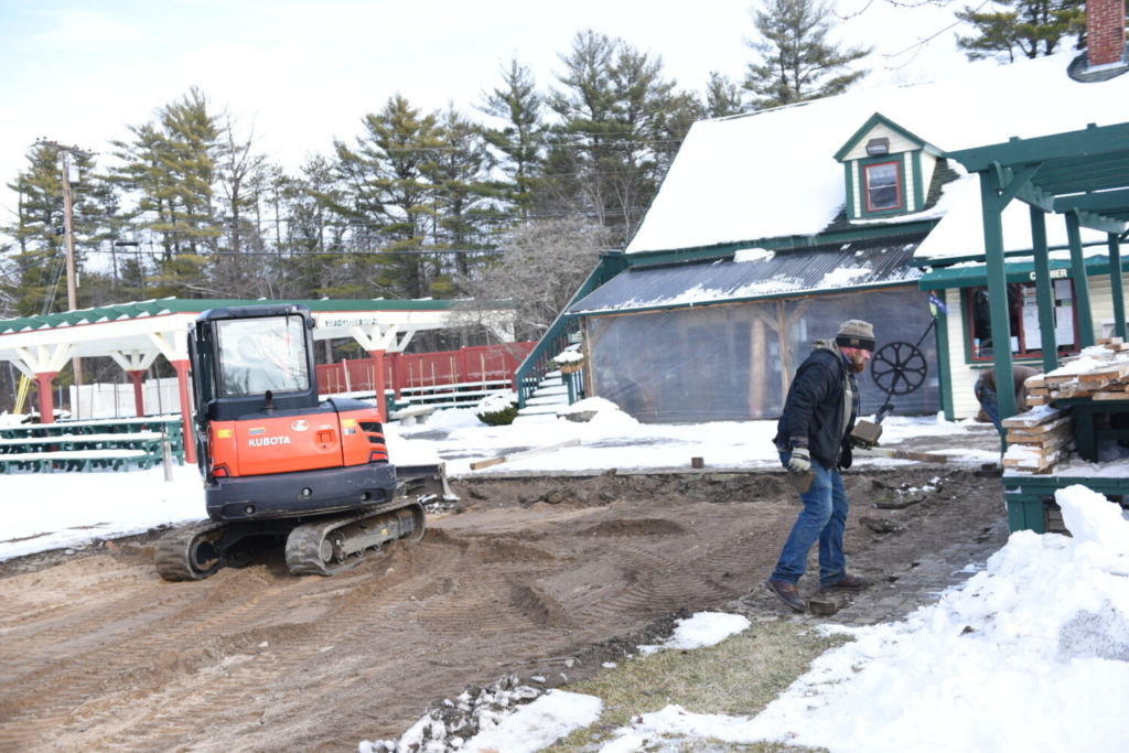 A worker walks across the frozen ground at Gammon’s Garden Center & Landscape Nursery on Route 4 in Auburn. The company broke ground Wednesday on a new glass conservatory. Andree Kehn/Sun Journal