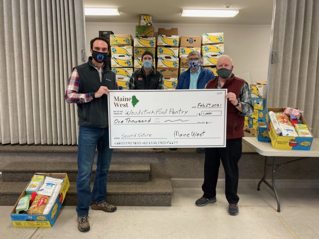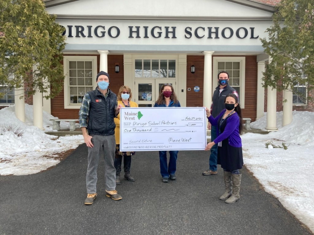 Prior to the pandemic Maine had the highest rate of hunger in New England and COVID-19 has caused hunger to rise as much as 25%, according to estimates from the Good Shepherd Food Bank. Local food pantries have seen a huge increase in demand, making the support generated through community efforts like the Second Nature Adventure Challenge particularly meaningful. Woodstock Town Manager Vern Maxfield shared that, “The Woodstock Food Pantry are instrumental in supplying food to so many in need and this gift is a huge help as they continue this effort.” Kelly Porter is a teacher at Dirigo High School and coordinator for the RSU56 pantries. “I am very happy to share with you that we did have a lot of students and staff that got outside over February vacation” Porter said. She added, “This was an excellent way to encourage our students to get outside, and also help our food pantry serve those in need.”