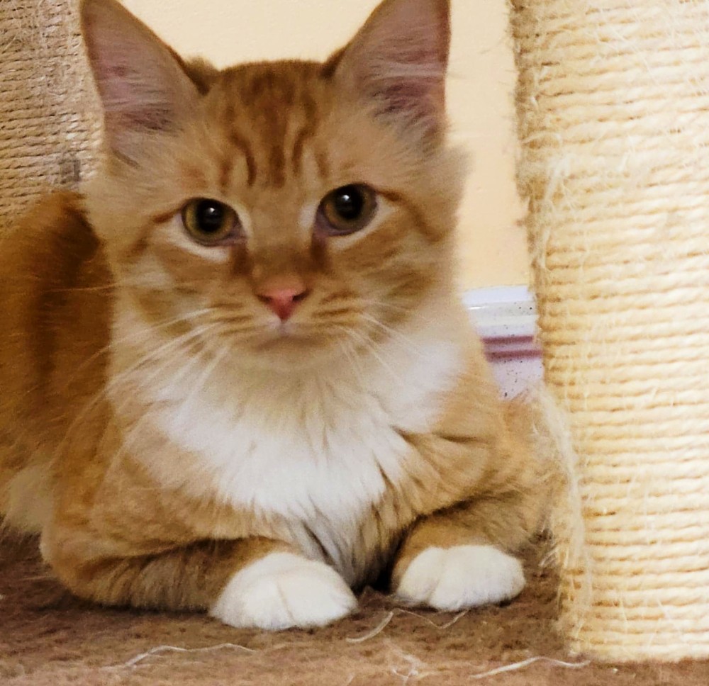 Donkey, is a male cat of four to six years old. “Hi there, my name is Donkey. I am a very outgoing and vocal dude who very much has a Jekyll and Hyde personality. I can be very sweet but I also get over stimulated very easily and have been known to bite. Due to my sharp personality, I would not be suited for a home with small children.
