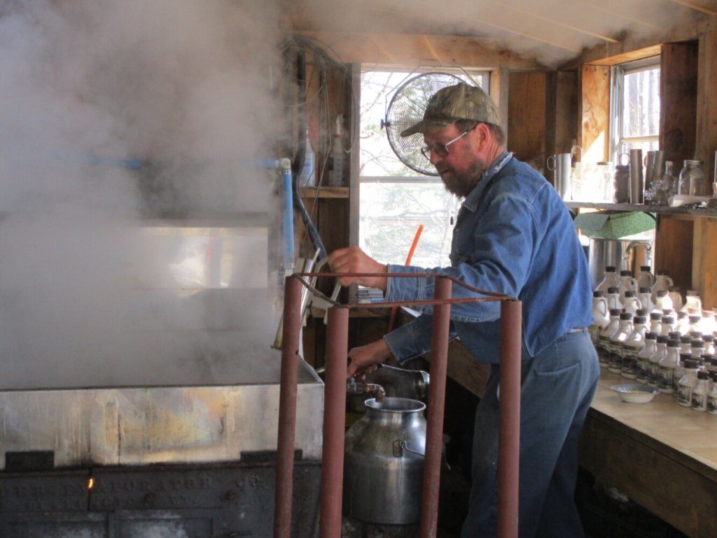 Ed Swain boiling some of his sap ahead of Maple Sunday. Swain has been doing this most of his life. He now has around 1200 taps. Bethel Citizen photo by Samuel Wheeler.