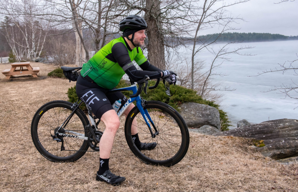 Greg Carson of Auburn takes a break from his ride Thursday to admire Lake Auburn. The self-employed psychotherapist transitioned to working by Zoom during the pandemic and is unsure to what extent, if any, he will be returning to in-person therapy. “It’s nice not to have to commute to work,” he said, “and when there is a break in my workday I can go for a bike ride, a paddle, or a swim.” Andree Kehn/Sun Journal Buy this Photo