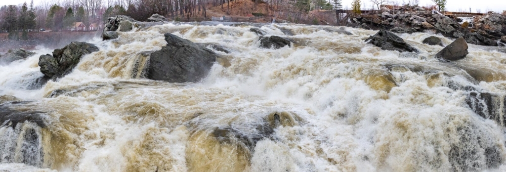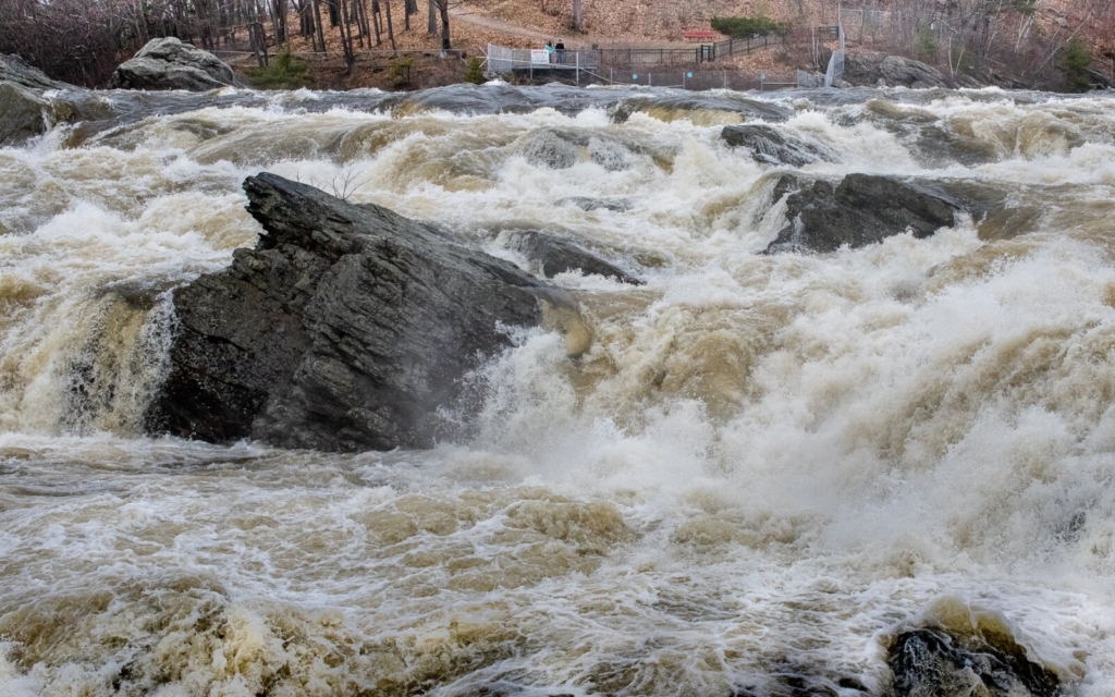 WIth recent rain and melting snow, Great Falls on the Androscoggin River, between Lewiston and Auburn, is roaring. Visit sunjournal.com to see a short video of the falls. Russ Dillingham/Sun Journal Buy this Photo