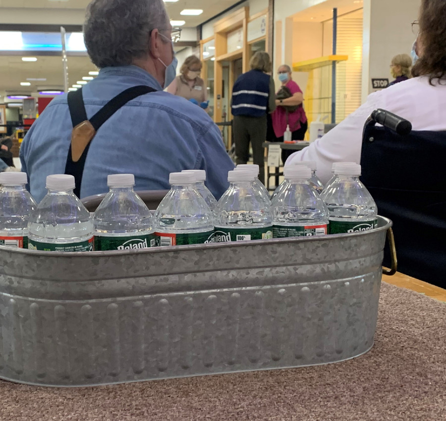 AUBURN – Poland Spring Water has generously donated 75 cases of water for use at the high-volume vaccination site run by Central Maine Healthcare at the Auburn Mall, the first such site in Androscoggin County.
