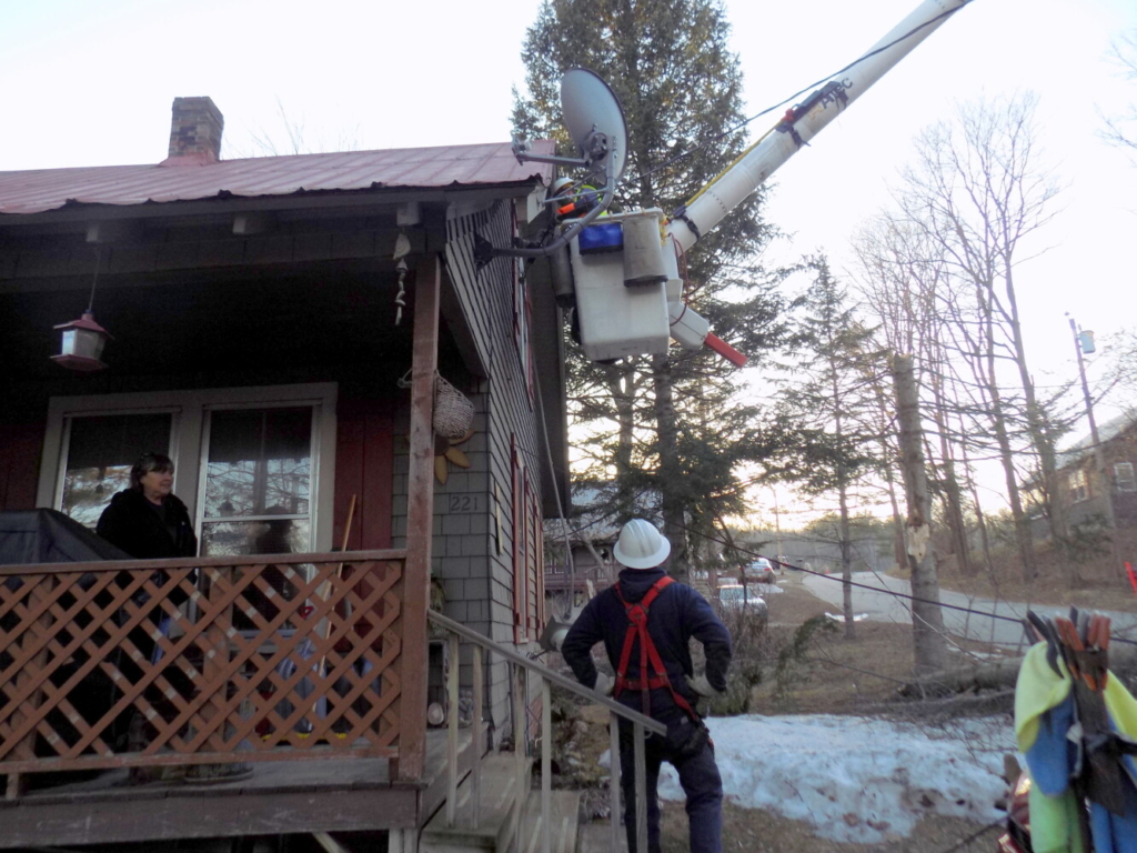 Meanwhile, CMP Co. lineman Drew Soule reattached the lines to the home.