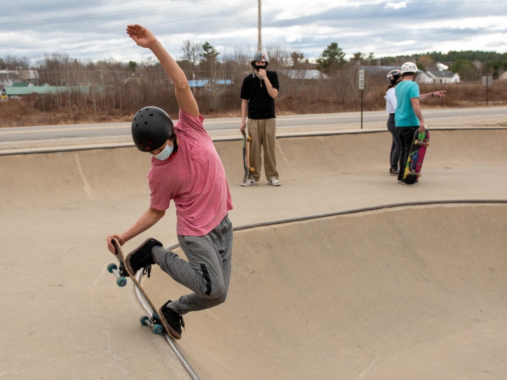 Finn Dolan, 16, does a tail block trick Wednesday at Davis Park in Bethel. Dolan is a member of the Gould Academy skateboard team, which practices five days a week, both at the skateboard park near the academy and at indoor locations. Andree Kehn/Sun Journal Buy this Photo