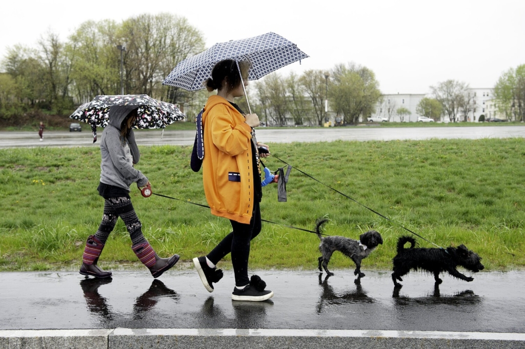 Jazlynn Burwell, right, and her cousin, Aryanna Mendoza, walk dogs Shelby and Willow on Friday in Lewiston. Burwell, 13, is a seventh grader at Lewiston Middle School. Mendoza, 8, is a third grader at Connors Elementary School. Daryn Slover/Sun Journal Buy this Photo