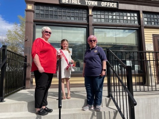 Miss Poppy is greeted by the Bethel Town Manager, Mrs. Loretta Powers and Barb Dion, President of the American Legion Auxiliary, Bethel.
