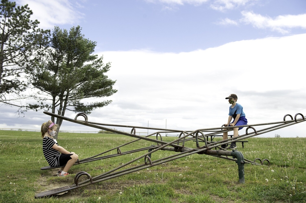 Adele Tripp, 11, and her brother, Elijah, 12, play Sunday on the seesaw off Gracelawn Road in Auburn. Daryn Slover/Sun Journal Buy this Photo