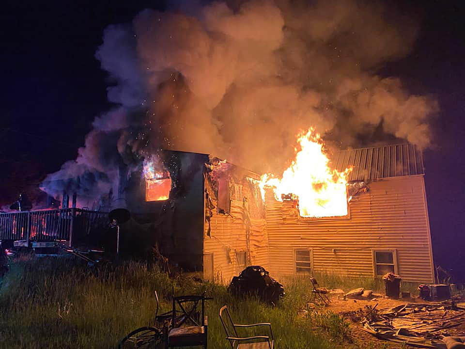 Flames consume a home early Tuesday morning on Pond Road in Wales. A man was rescued through a bedroom window. Wales Fire Department photo
