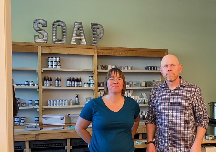 Gina Harlow (left) and Eric Galarneau are now welcoming customers into their Norway store, Handmade Maine, sans face coverings. Nicole Carter / Advertiser Democrat