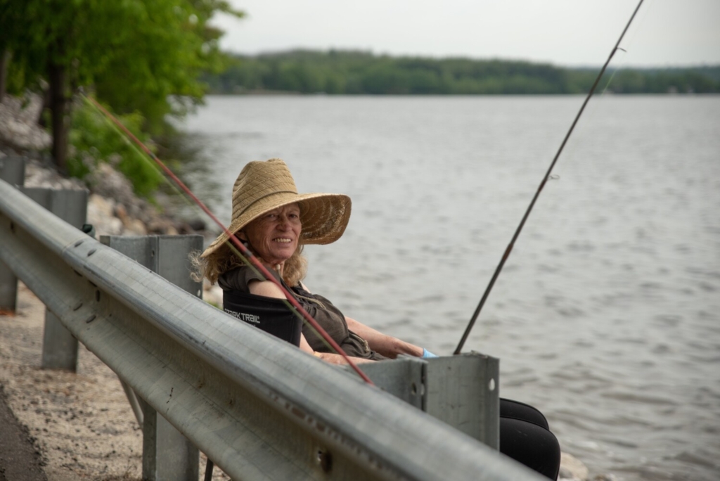 Patsie Scott of Greene fishes for perch Thursday morning near her home on Sabattus Pond. As of 9 a.m., Scott’s bucket was empty. Anna Gouveia/Sun Journal
