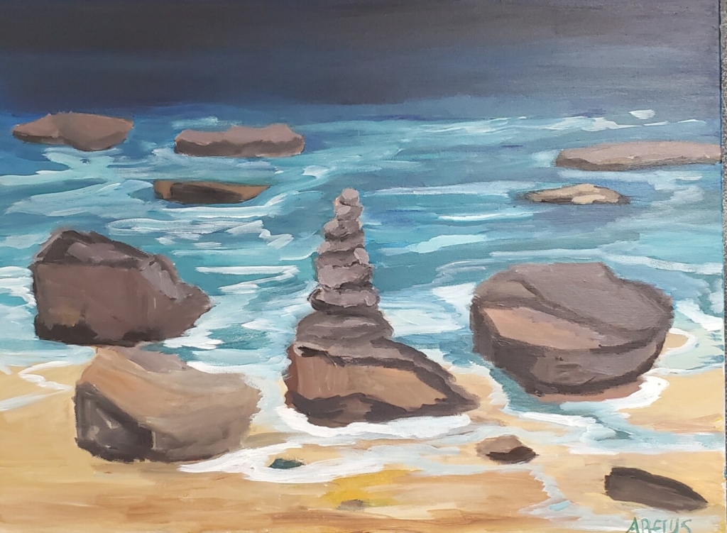 She works primarily in acrylic and also enjoys watercolor, oil paint and oil pastel.