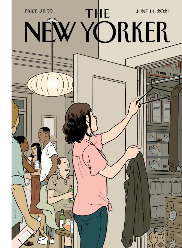 Now, time and vaccinations have caught up with Tomine’s early optimism. His artwork, titled “Easing Back,” fronts the June 14 issue of the New Yorker, reflecting how many people are socializing indoors and unmasked.