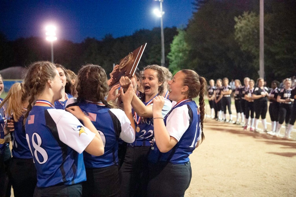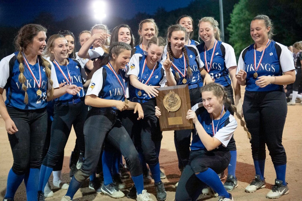 Sixth-seeded Saints (8-10) pitcher Kathleen Dean also was dealing strikeouts, but the Vikings (12-6) were able to score once against her in the bottom of the first. A leadoff walk and a stolen base by Jordan Greeley were followed by a bunt single by Lily Nadeau. Dean struck out a batter, but then a run came home on a grounder by Lang, who ended up reaching due to a throwing error. Dean fanned the next two batters to get out of the jam.