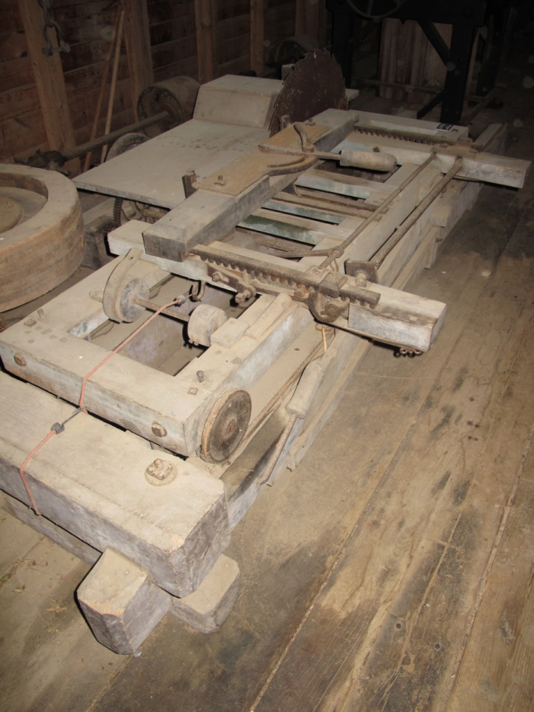 Historic Note: In the barn you will find the type of Johnson shingle mill purchased in 1848. Worthy Barrows was the first owner of the mill (until January of 1851) & Elijah Scribner was his foreman and sawyer. Worthy’s brother, Horace, had a habit of keeping a daily diary and noted the construction and outfitting of the mill. On “Fryday 24 March, 1848 ….concluded with Br. Worthy this afternoon to turn out Joe Holden’s old shingle machine and introduce one of Johnson’s of Augusta.” Shingles were made throughout the history of Scribner’s Mill until it closed in 1962.