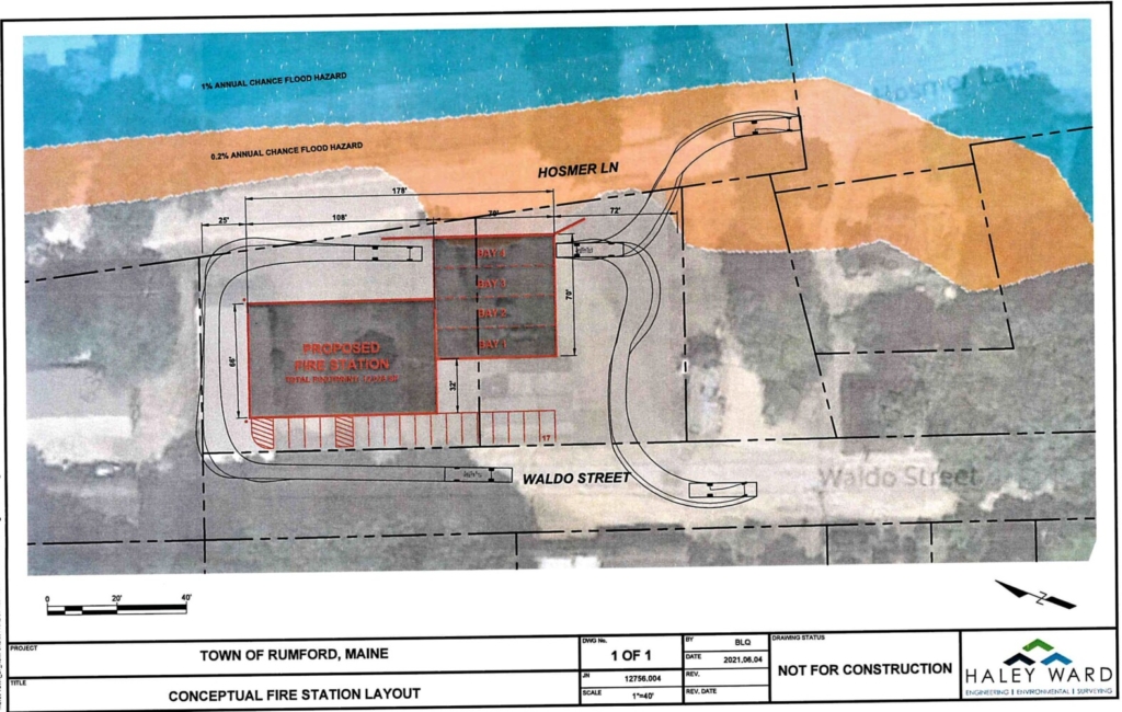A conceptual drawing of a new Rumford fire station at the Waldo Street and Hosmer Lane site. Submitted map