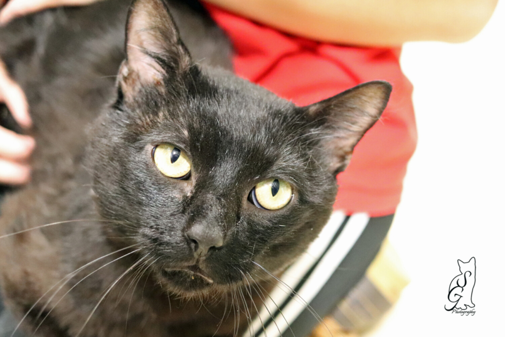 Spuds is a large cat that needs to be around people. The moment he is released from his kennel he heads to his caregiver and sits in her lap. He is very content to stay there for as long as she is willing to rub her hand along his back.