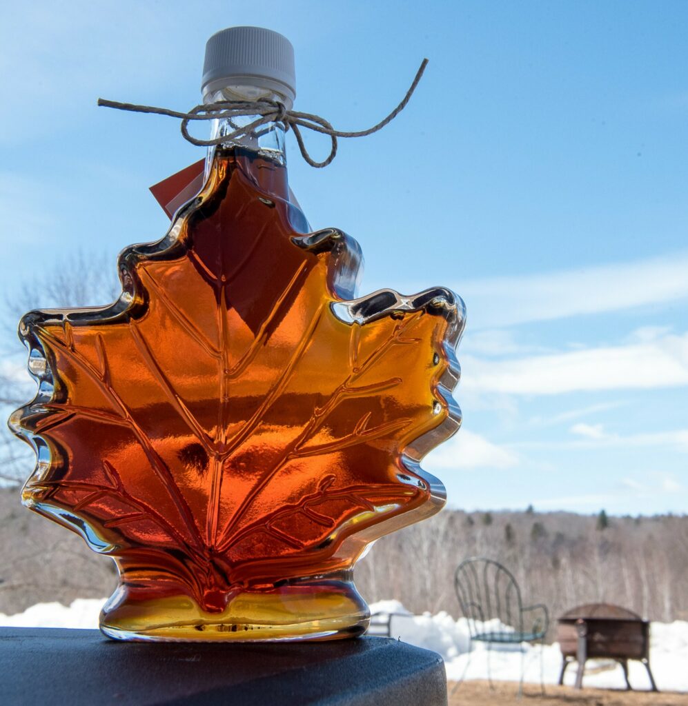 A bottle of maple syrup sits on a table at Russell Farm Bakery and Maple Products in Poland. Russ Dillingham/Sun Journal file photo