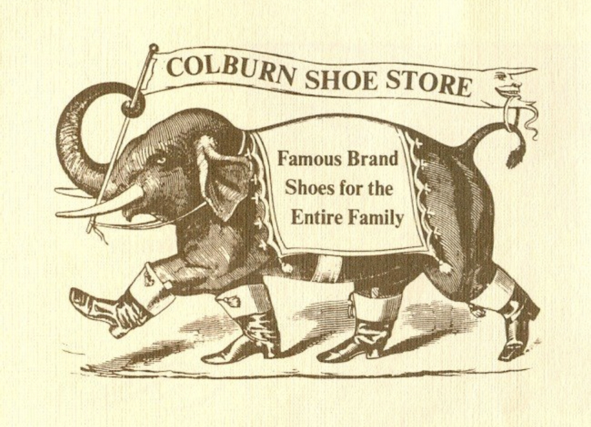 b) A circus elephant storming through its front windows in 1908 — and owners having the good humor after to add the elephant to its store logo.