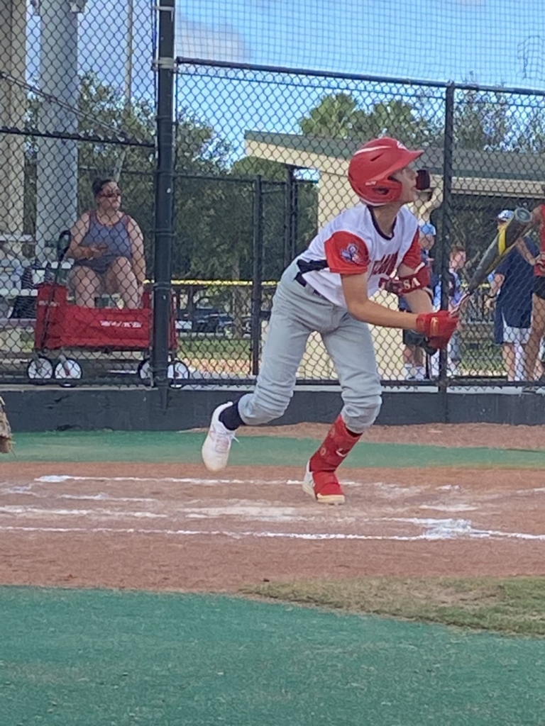 Danny Millson watches his single off the bat during Tuesday’s game against Magnolia, Arkansas at the 12U Cal Ripken World Series in Palm Beach Gardens, Florida. Photo provided by Angela Wilkinson