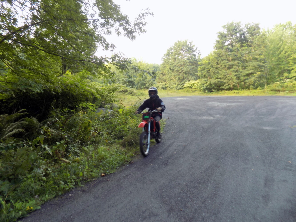 This dirt bike rider is seen on Prescott Fields trail in Farmington early Wednesday, Sept. 1. Pam Harnden/Livermore Falls Advertiser