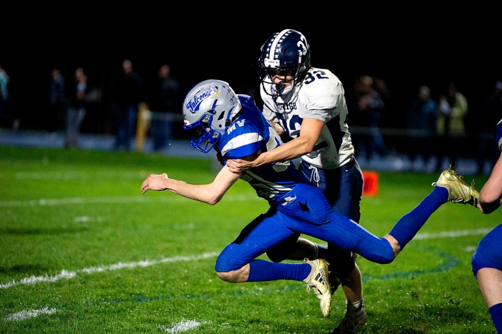 The Falcons went on another long drive down the field, and on the 10th play Kaden Paaso scored on a 12-yard run that started in the middle before he cut to the outside. The Falcons were called for false start on the two-point conversion and didn’t convert on their second try, so Dirigo held onto a 8-6 advantage.