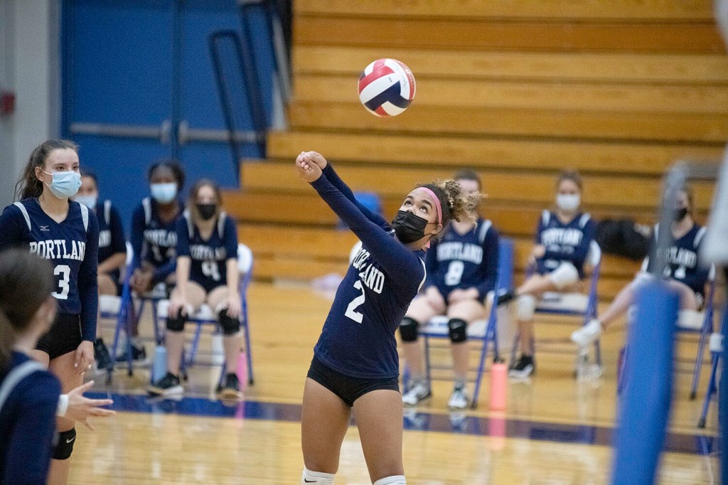 Two Kassandra Cornejo (10 of 11 serving, 12 digs, two aces, two kills) serves later and Portland hit a return well wide of the sideline, giving the Blue Devils the set win at 28-26 and the match victory that sends them to a second-round matchup with No. 1 Biddeford.