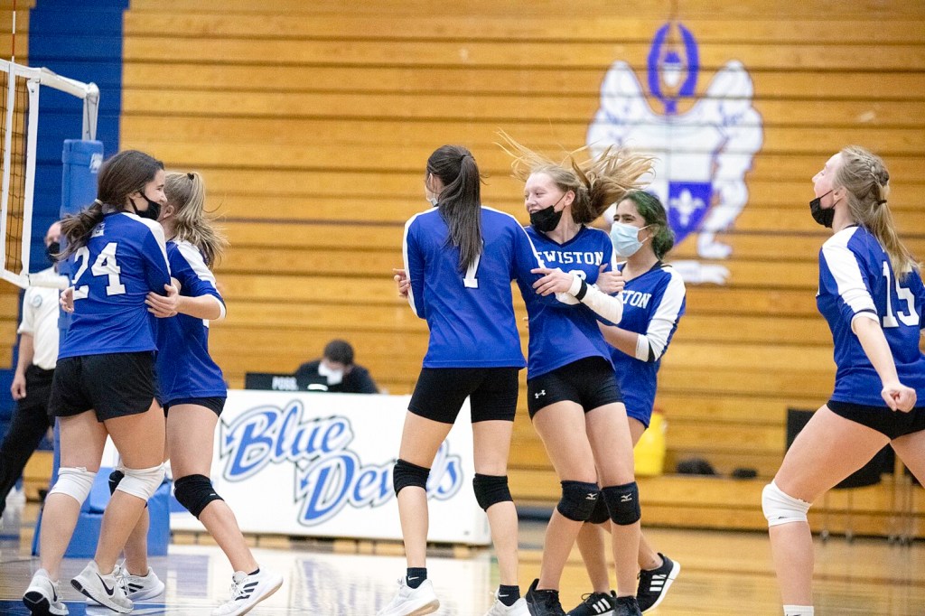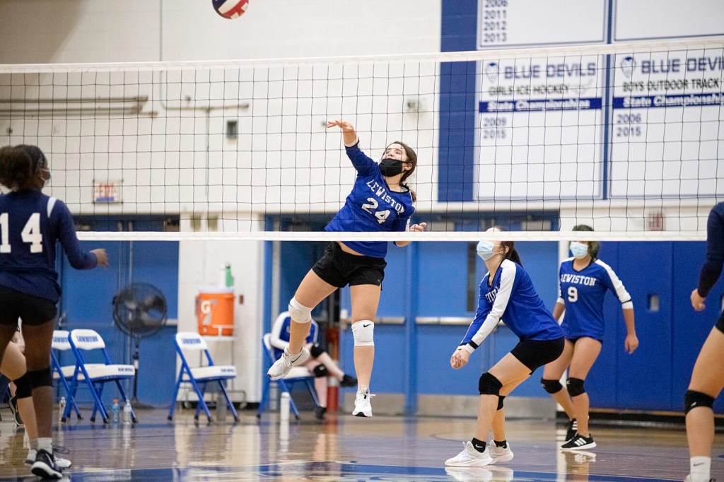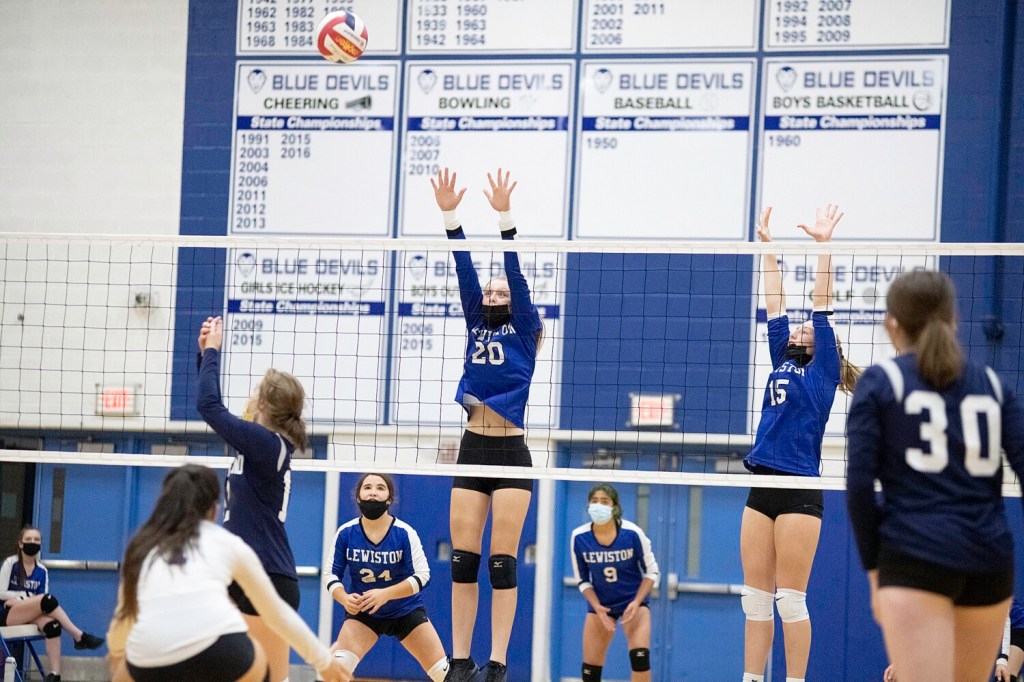 Lewiston fell behind multiple times in the fourth set, including getting down 21-12 before freshman Maddie Oliveira helped serve the Blue Devils to within 21-20.