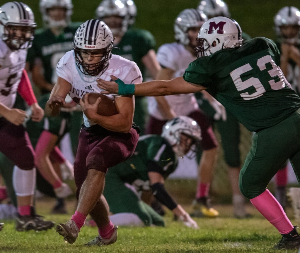 Foxcroft coach Danny White called back-to-back timeouts because, he said after the game, he was uneasy about the defensive formations the Ramblers lined up in. When the Ponies finally ran their fourth-down play, quarterback Austin Seavey dropped back to pass and found Gideon Topolski for a 12-yard touchdown in the back of the end zone. Kicker Kemsley Marsters hit the extra point and Foxcroft’s lead was up to 24-14 with just 5:25 remaining in the game.