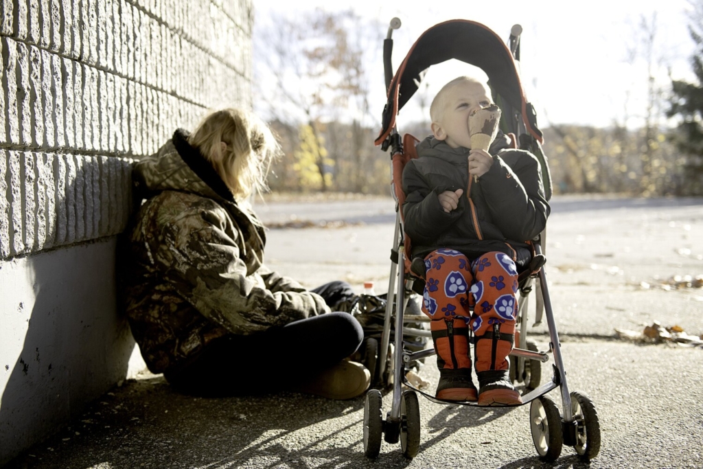 Cam Johnson, 4, of Lewiston eats an ice cream cone Tuesday on a cold and windy day in Lewiston. “That’s what he wanted,” said his mother, Lisa Johnson, left. Daryn Slover/Sun Journal
