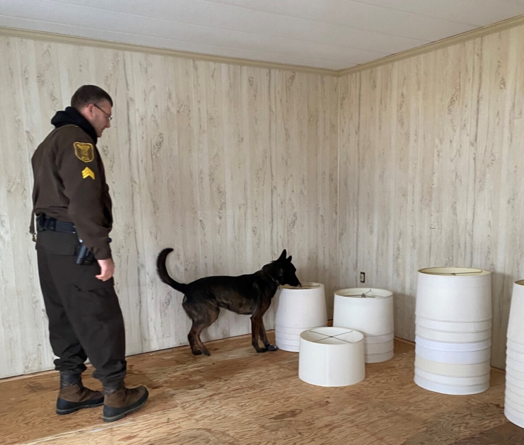 Last Thursday Cooper and six other K9s were put through their paces as part of regular training. The dogs are expected to do it at least once a month for each discipline they work in. They can scent drugs stashed in pretty much any hiding place, including fireproof safes or vaults.