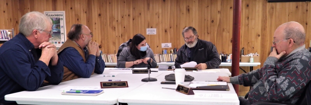 Interim Town Manager Alicia Conn listens to Dixfield Board of Selectmen Chairman Norman Mitchell at the Nov. 22 board meeting. From left are Selectmen Peter Holman and Ricky Davis, Conn, Mitchell, and Selectman Richard Pickett. Bruce Farrin/Rumford Falls Times
