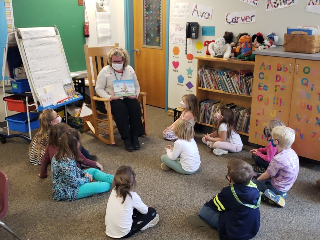 “[The] biggest challenge … each day I’d zoom and I had three reading groups,” explains Kennett. “I did read aloud a couple times a day and then I did a math group two to three times a week and then I did reading group every day. And then we did show and tell on Friday.