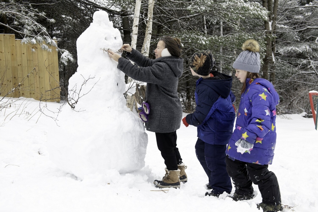 Monique Collins and her grandchildren, Richard Freeman, 9, and Bobbi Freeman, 7, build a snowman Tuesday in Poland. “We are enjoying the fresh snow,” Collins said. Daryn Slover/Sun Journal