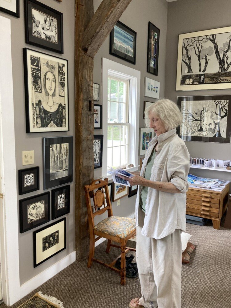 Local artist Deirdre Cavanagh opened her studio in Bethel on Main Street the last week of July. It’s called Cavanagh Ink Studio and she has put her collection of 50 years of work inside. When asked if there’s an answer to some of life’s questions hidden in her sketches, drawings, or poems, she replied, “It’s not that simple. … All of this, and this is how I’ve come to feel about life, nothing is just one thing. When you go back to the root and look for the meaning, that’s where I think all of us who are — if you are a poet, or a writer, or a painter, you want to get to the basic, to the reality of the words … but it all shifts … so sometimes you’ve got it … and then sometimes you go poof! Ha!”
