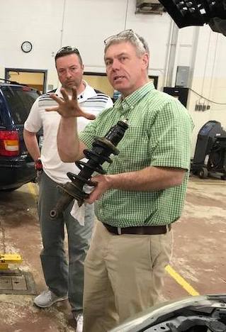Pete Gagnon, right, of Lewiston Regional Technical Center, talks to students in the Construction Training Program while the center’s construction teacher and program instructor Jason Merritt, left, listens. Submitted photo